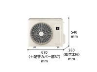 ●室外機:幅670(+配管カバー部57mm)×高さ540×奥行280(脚含326mm) mm