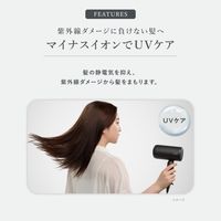 ●マイナスイオンがヘアドライ時の髪の静電気を抑制しキューティクルを保護。紫外線ダメージからも髪をまもり、速乾ディンプフローとともに指通りの良い髪へと導きます。