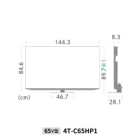 画面サイズ[横×縦/対角]:65V型 [ 142.8×80.4cm/163.9cm ]